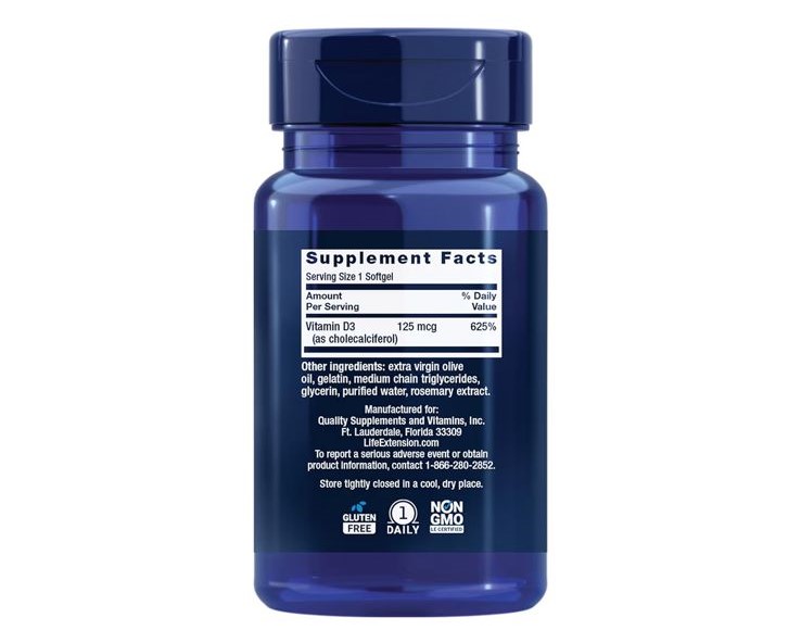 • Life Extension Vitamina D3 5000 IU x60 – Huesos fuertes y defensas