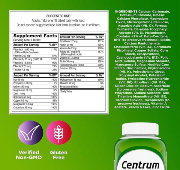 Diseñado especialmente para adultos en Perú, Centrum es la marca #1 en el mundo en multivitamínicos y ahora está disponible para ti con su presentación de 200 tabletas, ideal para varios meses de nutrición completa.