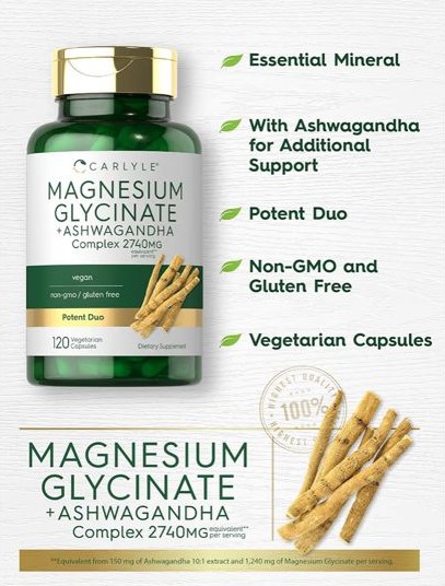 Magnesium Glycinate + Ashwagandha Carlyle x120 – Relajación y estrés