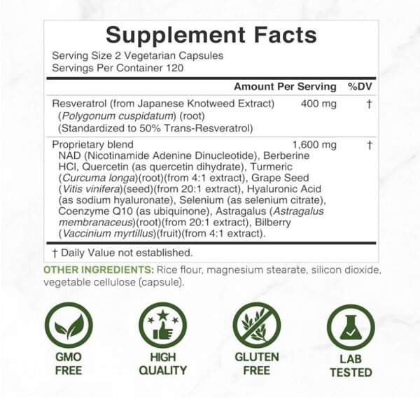 Protege tus células y rejuvenece tu organismo con Resveratrol Complex 2000 mg de Deal Supplement. Conocido como el “secreto de la longevidad”, el resveratrol es un antioxidante natural presente en la uva y en el vino tinto, que ayuda a mantener tu corazón, piel y mente en óptimas condiciones.