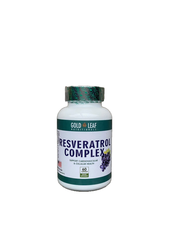 Resveratrol Complex de Gold Leaf Nutritionals (frasco x60 cápsulas). Un polifenol potente para quienes buscan proteger su corazón y sus células de forma natural.